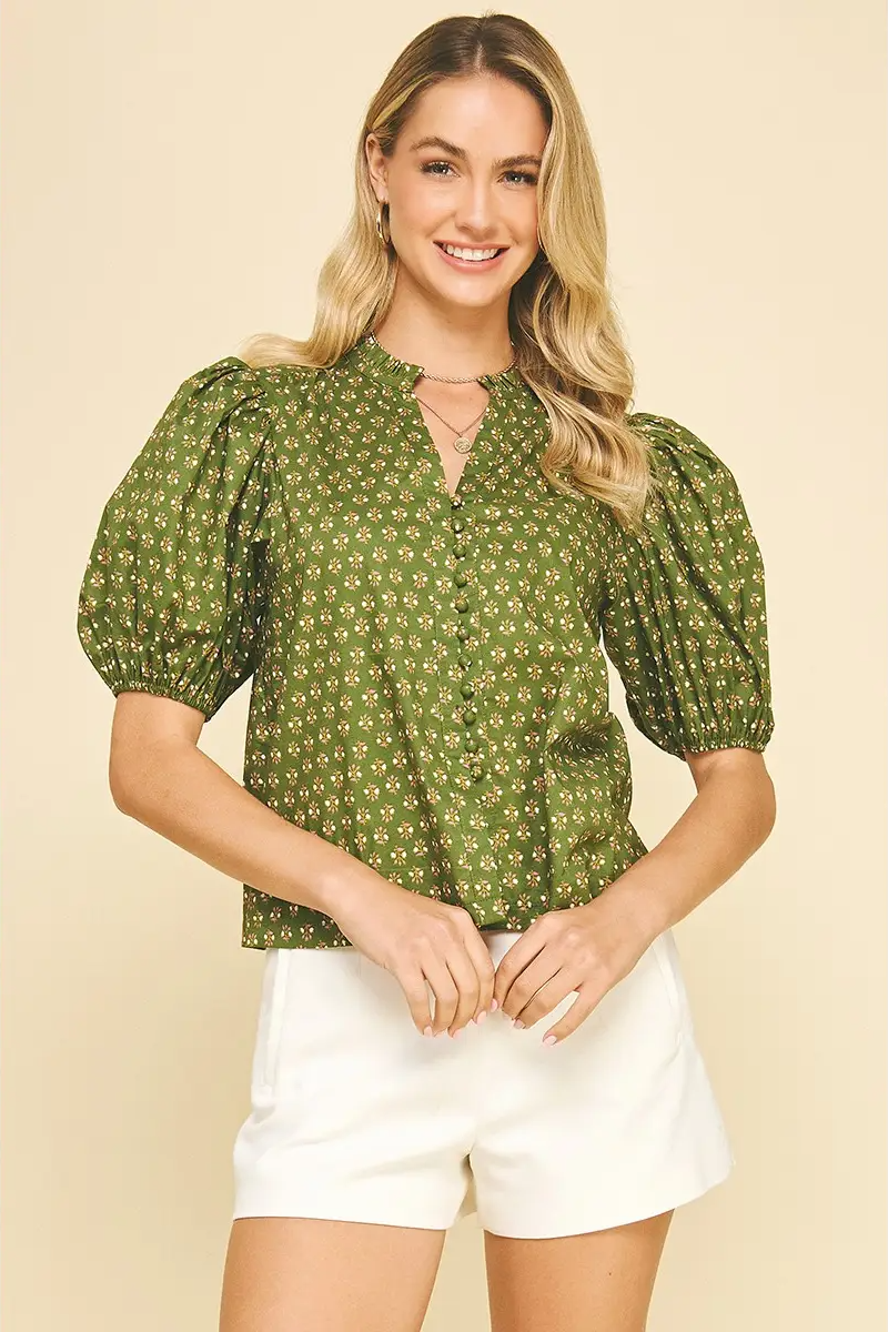 Floral Puffed Sleeve Blouse Top