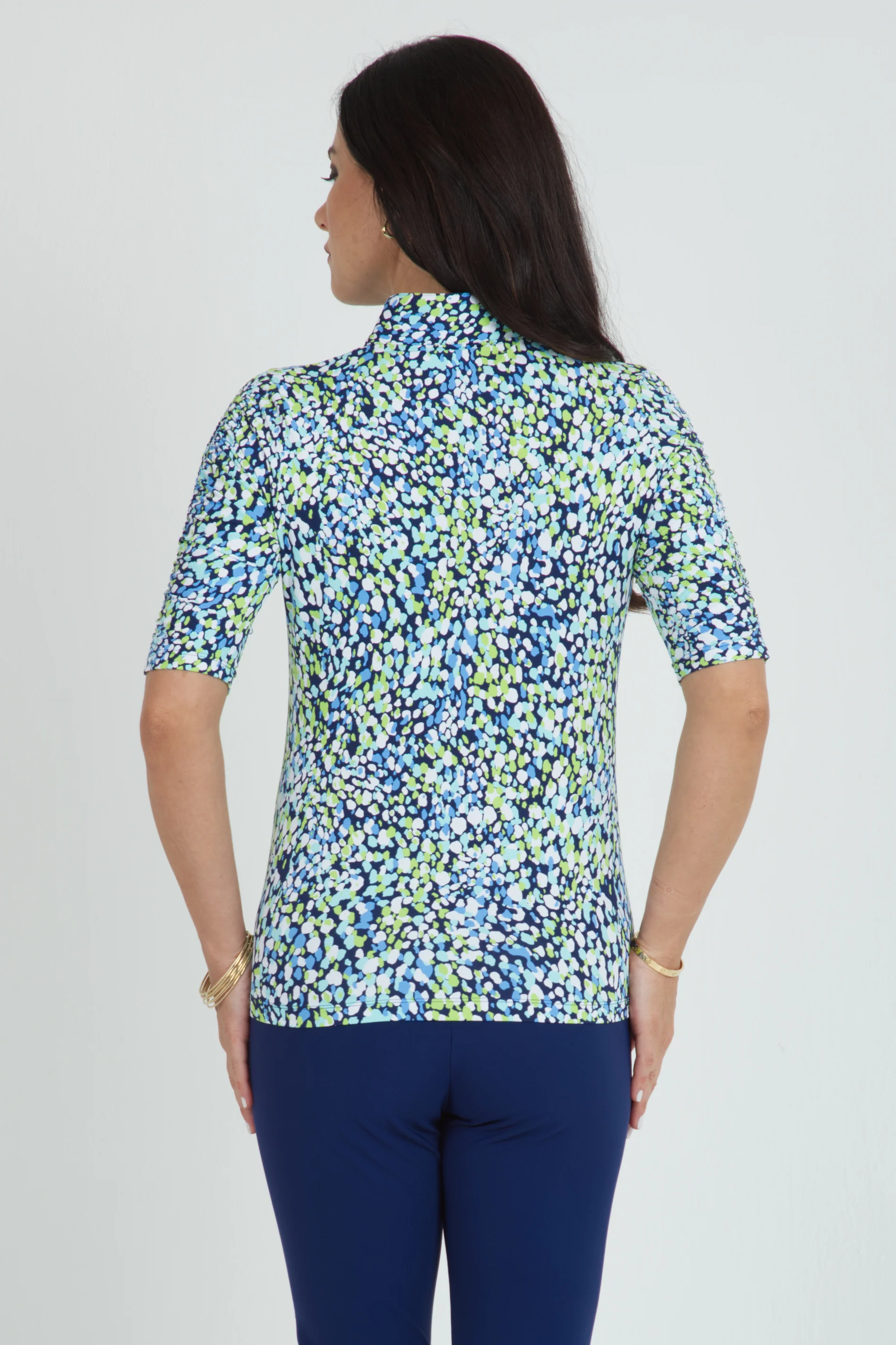 Naomi Print Ruched Elbow Length Sleeve Top