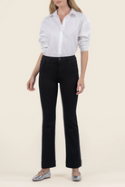 Made from a soft, stretchy fabric, these pants feature wide hems and a flattering fab ab design, offering a perfect blend of comfort and style. Their versatile, timeless look makes them an essential addition to any wardrobe.