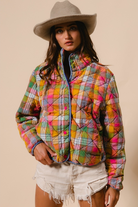 Bleached Vintage Plaid Quilted Jacket With Pockets