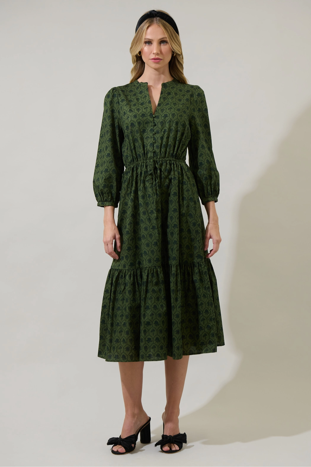 Zinnia Floral Split Neck Midi Dress