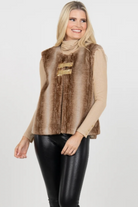 The Roxy Vest in Fur features a gold front snap closure and a relaxed, loose-fitting silhouette. Designed in a plush, luxurious fur quality, this layering piece is made to live on season after season in your winter wardrobe. Its timeless texture adds warmth and dimension, making it the perfect topper to elevate any look with a touch of chic coziness.