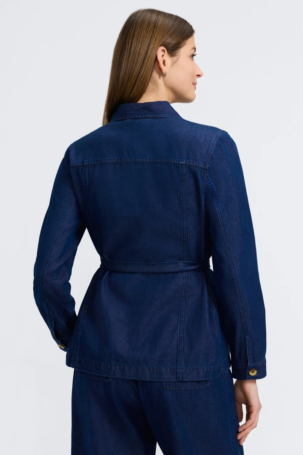 A minimalist layer with timeless appeal. Made from soft, lightweight Tencel denim, Stella blends relaxed structure with everyday polish. Available in two versatile washes, it features an optional self-tie belt so you can wear it open for ease or cinched for a more defined shape. Four patch pockets offer subtle dimension and handy storage, while the breathable fabric stays smooth and packable — perfect for travel or life on the go.