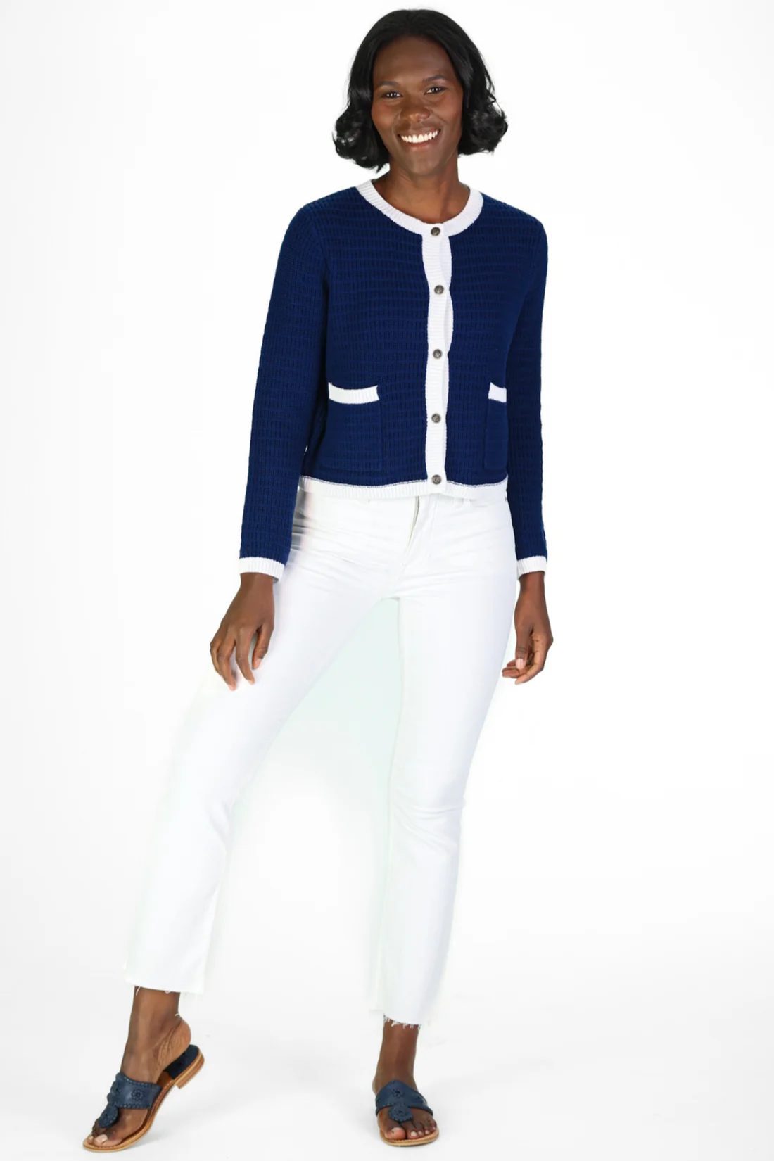 This all new cardigan represents classic femininity. Timeless, effortless, and chic- this style is a closet must-have. The knitted body is comfortable and versatile, while the brass buttons and structured silhouette elevate it to the next level. Perfect for meetings, brunch dates, beaches, boats and beyond, this will be your new favorite style. Pair with denim and flats or a skirt and heels.