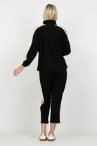 The definition of effortless polish. The Long Sleeve Poppy in Midnight Vanilla blends sport and sophistication with its classic stand collar, elastic dolman sleeves, and relaxed silhouette. Crafted in our soft, luxe loom fabric, it’s made to move with you—whether you’re running errands, cheering from the sidelines, or lounging in style. The black-and-cream color block keeps things timeless yet bold, making this elevated essential your go-to for every mode of life—from super mom sports mode to Sunday chic.