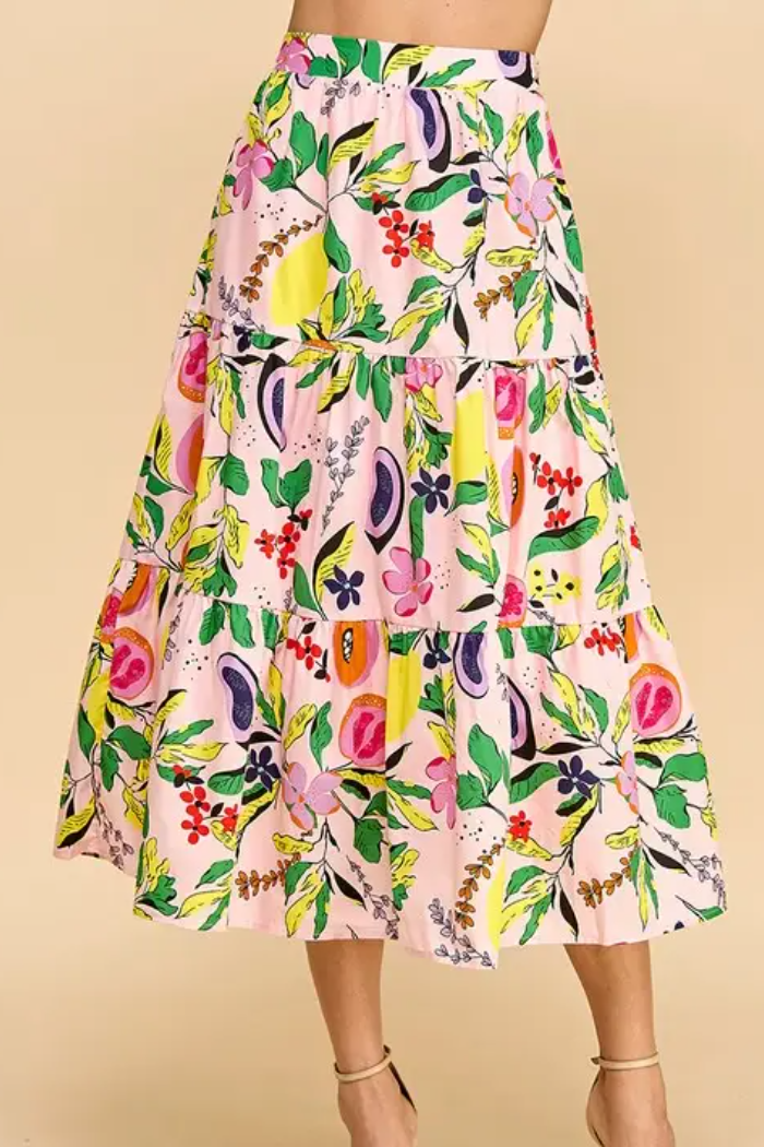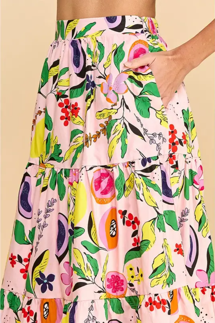 Maxi skirt In a fun summer print! Add your own top or wear with matching top for the perfect set!