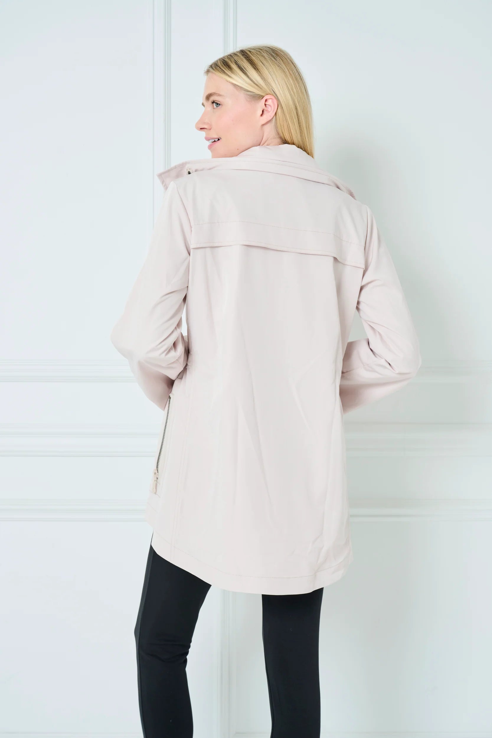 Fully lined with a hidden hood in the collar