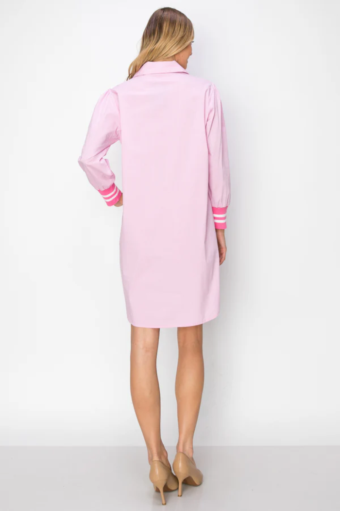 The Wenna. The perfect shirt dress ! Made with high quality woven cotton poplin. Mixed with stretch striped ribbed contrast. Collar, long sleeves, front pocket, and side pockets. Very versatile. Wear it as a tunic or dress. Easy relax fit. Stylish and comfy.